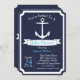 Stäng av nautiskt vit ankare, marin blå och vit mikro-polka dots-duschinbjudan. Underbar för en nautisk termisk dusch för ett pojke!