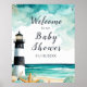 Vackra babyduschar poster med ett sjömanssvart och vitt fyr, stjärnfisk och snäckor. Perfekt för ett bröllop. Ord kan ändras till kostym med dina egna uppgifter eller krav
