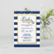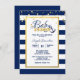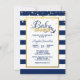 Elegant och modern nautisk design med faux guld conetti och marin blå och vit rand. Babydusch/baby sprinklingade festinbjudningskort. Unisex, könsneutral, pojke eller flicka. Faux guld folieformulering och konetti. All text kan redigeras med teckensnitt och storlekare. Glöm inte att hämta favoritklistermärken och ta med en bok!