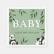 Contemporary, men söt babydusch, party-napkins med vattenfärgsdjup grönt botaniskt bladverk löv som sätter texten "BABY" i vit text med två lekfulla pandasbjörnar på en eukalyptus grönt bakgrund, namn och datum.
