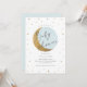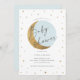 En inbjudan till söt, babydusch med guld måne och stjärnor med mjuk pastellskugga på en vit bakgrund.