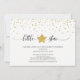 Modern minimalistisk liten stjärndusch med ett modernt kalligrafihandskrivet teckensnitt med en sprinkl av guld konetti glitter