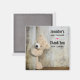 Tack magnet med ett foto av en söt stoppad björn, som står vid en rustisk trävägg/bakdel.