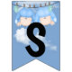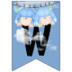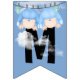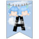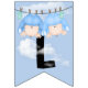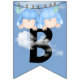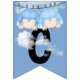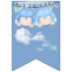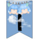 Cute twin pojke i blå PJs som hänger på en klotelin med moln och blå himmel-bakgrund för barndusch i baby.