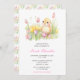 Söt babyduschinbjudan med en bra chick och rosa- och gult-tulpaner. Perfekt för en vår- eller sommarbabydusch. Ord kan ändras till kostym med dina egna uppgifter eller krav