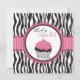 Boutique stil zebra tryck med accents för shock rosa och ett inbjudningskort för babyduschmöss.
