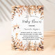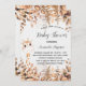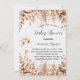 För en babydusch, könsneutral. En vit bakgrund, en söt liten baby giraffe och guldeukalyptus och skogsängar. Anpassa och lägga till uppgifter om namn i mamma till namn och party. Namn och texten: Baby Shower är skrivet med ett handskript i stil