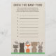 Använda vår skog fick ett jakkort för babyduschspel för att få gästerna "Gissa Baby Food". Lägg ut burk av baby-mat med de etiketter som täcks och få gäster att försöka gissa vilken smak varje burk har med syn, lukt och till och med smak. Trädjur omfattar räv, mos, mårkoon, kanin och björn.