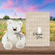 En vit nalle och en könsneutral bakgrund med diamantargumentbakgrund. Björn visas precis ovanför "Tack".