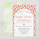 Berry Sweet Farmers Market Baby Shower-inbjudan. Välkomna dina vänner och familj till Berry Sweet Farmers Market Baby Shower med den här roligten, festliga inbjudan. Med en färglös vattenfärgsfrukt mönster av jordgubbar med en bågformad ram och exuberant frätande kalligrafi i form av ett hjärta. Denna inbjudan är en perfekt för alla mamma att bli utomhus och färsk, lokal produktion på jordbrukarnas marknad i kärlek. Skapa en minnesvärd händelse som firar hennes kommande ankomst med denna utsökta inbjudan!
