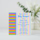 Den här anpassningsbarnas barnduschinbjudan kan vara lämplig om baby ska bli pojke eller flicka. Ett rand mönster i regnbåge i färger, med blekens ränder bakom skrivningen. Texten är blå och kan vara personlig för att skapa en inbjudan till anpassningsbarna. En ljus och färgstark roligt.