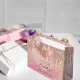 En presentväska för en giftig och glamorös babydusch. En rosa, övertoningsbakgrund för ro guld med faux glitter-droppar, färgdroppstift och ballonger. Texten: namn är skriven med ett modernt handskript i stil. Anpassa och lägg till ett datum och namn.