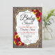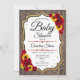 Bjukbildsinbjudan. Rustik design med lingträ mönster och faux glitter guld. Har solblommor, röd ros, trendig, skriptteckensnitt och konetti. Perfekt för en elegant som är könsneutral babyvisningsprogram. Anpassa med dina egna detaljer.