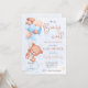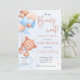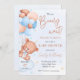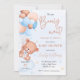 En söt vattenfärgad björn i baby flyter med blå och bruna ballonger omgivna av stjärnor och mjuka moln. Den här "Barly Wait"-inbjudan är perfekt för att välkomna ett pojke med kärlek, värme och en liten bit stollig.