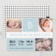 Babystatistik Monogram Blå Färgblock Foto Födelse Meddelande