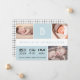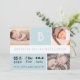 Baby Boy Stats Monogram Blå Färgblock Födelsekort 3 Flerbilder Collage Kort.