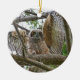 En bebisuggla vingar sträcks fullständigt ut, som den försök att flyga från träd förgrena sig var den sitter. Detta är ett original- foto av en underbar bebis för horned uggla.