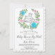 En beundransvärd blå babydusch av vit vintage genom e-postinbjudan med skalat kant, med en vintage rockande häst, omgiven av en vattenfärgsutandning av blommigten med ett typsnitt av eleganten. Gungande häst visas på baksidan av kortet som mönster. Anpassa med egen textinformation. Om du föredrar en annan skripttyp kan du välja bland de många skripttypsnittsalternativen genom att klicka på "anpassa ytterligare" och använda vår design verktyg för ditt val.
