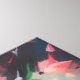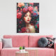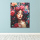 Miss Baccara Ro's porträtt, med petaler som sprider sig utåt som en livfull visning av fyrverkerier och sprider fragment av färg in i luft