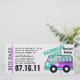 Buss är på väg till en oförglömlig party kväll. Skapa er egen färdväg på buss-passet och byt även biljett färg. Anpassade för alla händelser.