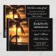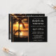 Beach bachelorette weekend itinerary template featuring a sunset at a tropical beach with palm trees. You can choose your own background color to replace the black if you like. On the back is an easy customizable QR code template. You can also just delete it if you do not need it. Beautiful for a tropical weekend getaway.