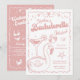 Den här rosa- och vita färg-paletten med liten flamingodesign och strand-boll har en - och vit chic-bjudande. Skriptteckensnittet tillför en aning elegans, medan de lekfulla illustrationerna skapar en roligt och ett festligt uttryck. Perfekt för ett stillastående vid kusten eller vid bassäng party, den här inbjudan kommer säkert att få dina gäster upphetsade för den stora dagen! Anpassa texten med dina party-detaljer så är du redo att fira!