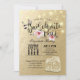 Inbjudningskortsmallar för möhippa/Bröllop Firande - Elegant Blommigt Bachelorette Party Lettering Script och Vintage Mason Burk String Ljus på Faux Gold Foil Background. En Perfekt för din stora dag. Alla textstorlekar i stil, färg, kan ändras för att passa dina behov!