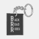Bär nyckelkedjan Back Road Rides logotyp med dig. BackRoad Rides (BRR) i ljusa grått-bokstäver på mörkens bakgrund.