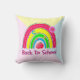 Färglöst regnbåge med brev, rött äpple, blomma och texten "Back to school" på en bakomliggande Perfekt av färg för en flicka.