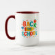 Starta din höger på morgonen med det här trevliga "Back to school" mugg! Den livliga penna- och äppelgrafiken och den ljusa texten ger ett energiskt tryck på kaffe, te eller hett kakao. Den här 11 oz mugg är perfekt för lärare, studenter eller föräldrar som går upp för skoldagen. Mikrovåg och diskmaskin säker.
