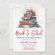 En underbar back to school-partyinbjudan. Denna fantastiska inbjudan har en hög av bokar och rosett band på guld konfekti-bakgrund. Enkel att anpassa med din egen information om party.