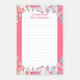 Skolförråd omfattar saxar, pennor, en glob, kritor m.m. på rosa. Mittdelen är vit med tunt grått linjer. Anpassat namn. Back to school