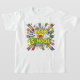 This Back to School t-shirt features a colorful cartoon-style design bursting with school vibes. The bold comic lettering is surrounded by playful school supplies like pencils, paintbrushes, crayons, and even a red apple with a leaf – all arranged in an energetic explosion of creativity!