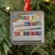 Back to school som bygger kvarter på staplade julgransprydnad metall
