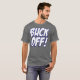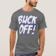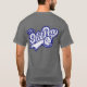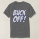 Buck Av! stor på bröstet med stor blå och vit OP-logotyp på baksidan. Vita skrivs inte ut på lättare färgad.
