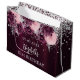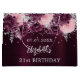 För elegant 21:a födelsedag (eller någon annan ålder). En burgundisk övertoningsbakgrund färg. Dekorerad med faux silver konetti och rosa och burgundblommor. Anpassa och lägg till namn och ålder. Namn är skrivet med ett modernt handskript i stil
