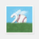En vit baseboll i grönt, blå himmel och moln för 20 år sedan. Ålder kan ändras.