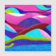 Backe och ett hav i färg av rosa, lila, blått, grönt och cyan.