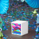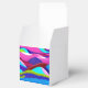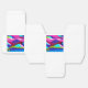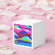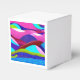 Backe och ett hav i färg av rosa, lila, blått, grönt och cyan.