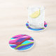 Backe och ett hav i färg av rosa, lila, blått, grönt och cyan.