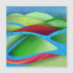 Ett abstrakt med vibrerande färg och struktur som visar backe flytande på is i nyanser av grönt, blått, cyan, rött och rosa.