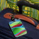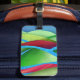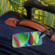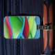 Ett abstrakt med vibrerande färg och struktur som visar backe flytande på is i nyanser av grönt, blått, cyan, rött och rosa.