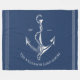 Filt med personlig elegant med ett nautiskt tema, med ett ankare för vintagen och din familj namn och det bästa datumet på en fast marin blå bakgrund. Perfekt till ett sjö hus, ett strandhus eller en båt. Anpassadet färg och text till fullo. Gör att perfekt elegant sjö hus eller båthusuppvärmning eller snyggt läggs till ett semesterhem!