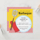 Denna skarpa färgad barbeque-inbjudan har en guld-bakgrund med en rand av röda kontroller över grund. Ett rött ugnsdiagram och en spatelbild finns på den lämnat sidan med en stor vit cirkel som öppnas för texten. Det här inbjudan kan anpassas efter vilken typ av barbek eller cookout som helst.