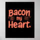 En lekfull och humoristisk design med frasen "Bacon My Heart" i fet, färglös brev. Texten är omgiven av visuella bakterierelaterade illustrationer, skapande en ljusare och underhållande sammansättning. Den övergripande utformningen är livfull och kraftfull.