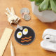 Lönsam bacon och stekta ägg i en friterande skapar ett fånig ansikte-mönster. Av Dooni-design