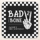 Celebrate your little one's second trip around the sun with this Bad 2 the Bone 2nd birthday party napkin. Designed in classic black and white checkerboard with skeleton hand making a peace sign, this table setting is perfect for highlighting your wild ride through the terrible twos. Personalize it with your event details for a party that will be two good to be true!