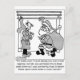 En man i hans badrock och framför hans kamrat säger till Santa: "Jag är söt säker på att jag bara ser dig på grund av dålig ägglossning, men ändå, som huvudman, försöker jag behålla skolkostnaderna nere så jag undrar om du skulle leverera dessa rapportkort medan du är på dina ronder?"
