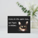 Lusande katter med attityd. Slogan "Kom till mörken..."Vi har cookies" på vykortet.