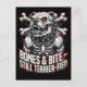 Unleash raw attitude with this badass skeleton bulldog Postcards design featuring a fierce snarling English bulldog skull with massive jaws, glowing red eye sockets, spiked collar with chains, and crossed bones death emblem. Designed in dark gothic horror punk style with distressed grunge textures and bold streetwear typography reading “BONES & BITE – STILL TERRIER-FIED.” Perfect for metal fans, biker style lovers, Halloween events, gothic Arts and hardcore dog enthusiasts. High-contrast black and white with striking red accents for maximum impact on apparel.